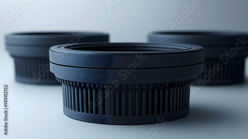 Three Dark Blue Cylindrical Objects with Ribbed Texture on a Lig
