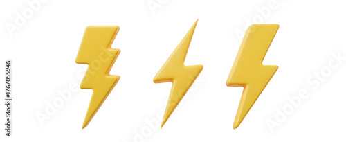 Three dimensional stylized thunderbolts symbolizing electric energy and fast charging 3D render.