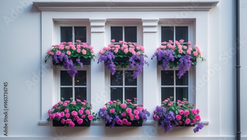 Three floral-decorated small windows on building facade