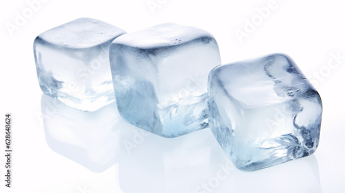 Three fresh juicy ice cubes, isolated on white background. .
