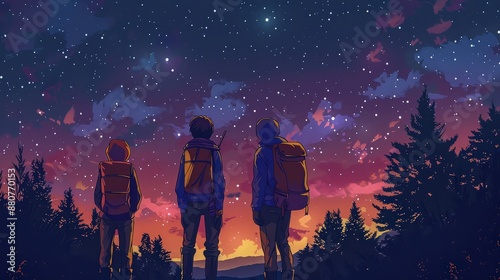 Three Friends Gazing at the Starry Night Sky