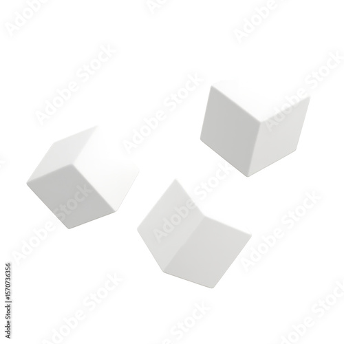 Three glowing white cubes levitating against gray gradient background – minimal geometric 3D illustration