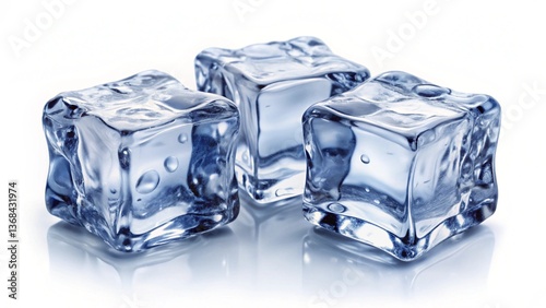 Three ice cubes, isolated on white background