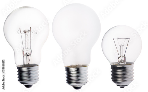 three incandescent electric lamps isolated on white