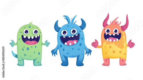 Three Kawaii Monster Mascots with Playful Gestures on transparent background