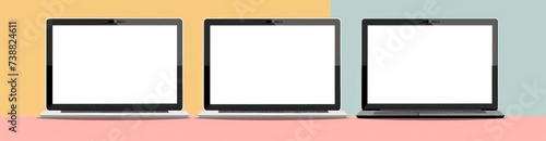 three laptops with blank screen on hd vector template, in the style of graphic black and white