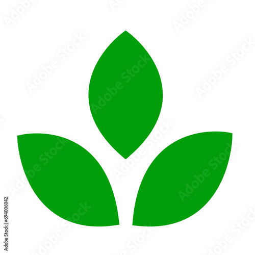 Three leaves eco icon. isolated on white. Vector illustration. Green flat leaves