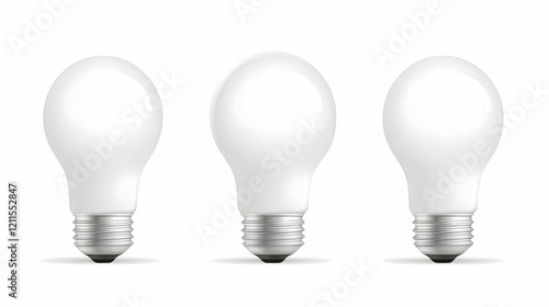 Three light bulbs on white background; energy efficiency, illumination, ideas, solutions