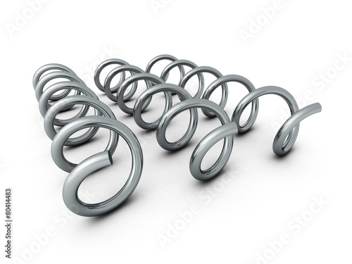 Three Metallic Shiny Springs Spirals On White Background