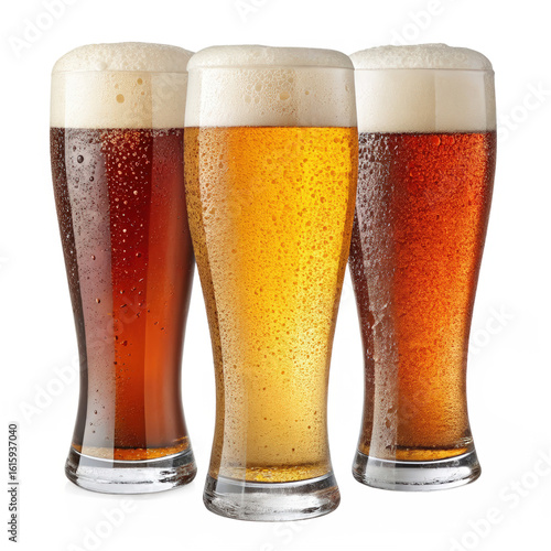 "Three Pint Glasses of Beer – Lager, Ale, and Stout PNG"