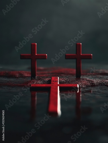 Three Red Crosses in Dark Setting Reflecting Symbolism of Faith