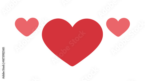 Three red hearts on white background love romance