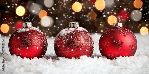 Three red ornaments in the snow