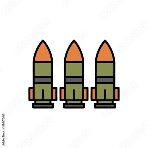 Three stylized green rockets with orange tips stand upright against a black background in a flat vector art minimalist style