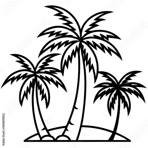 Three tall palm trees on a small island silhouette