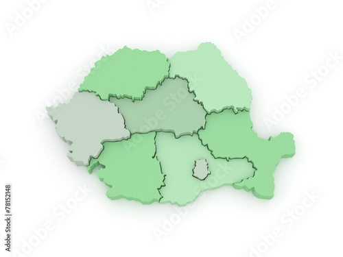 Three-dimensional map of Romania.