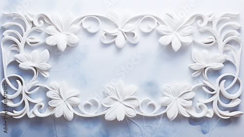 three-dimensional white frame with abstract floral ornament, plaster or plastic decorated frame