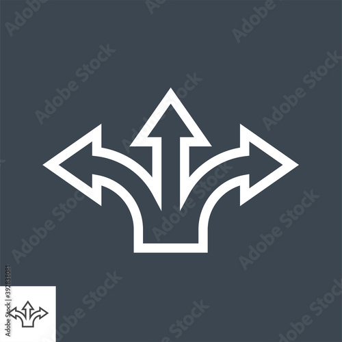 Three-Way Direction Arrow Thin Line Vector Icon. Flat icon isolated on the black background. Editable EPS file. Vector illustration.