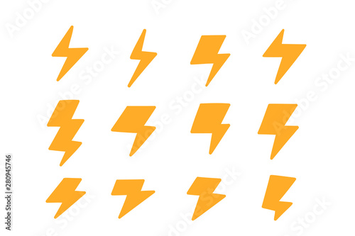 Thunderbolt icon set. Yellow sale promotion sign. Flash vector thunder