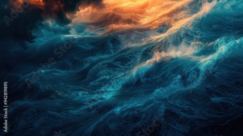 Thunderstorm showcases an abstract power. Lightning and rain fill the dark, stormy sky.