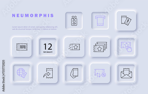 Ticket set line icon. Coupon, victory, VIP status, envelope, discount, sale, fair. Neomorphism style. Vector line icon for business and advertising