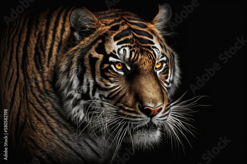 Tiger face wild tiger head wallpaper with a black background. Generative AI