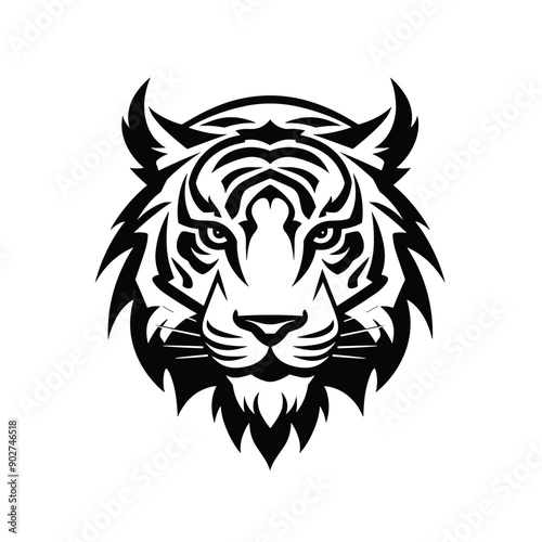 Tiger vector minimalistic black icon on white background. Logo, logotype, badge, emblem, sticker