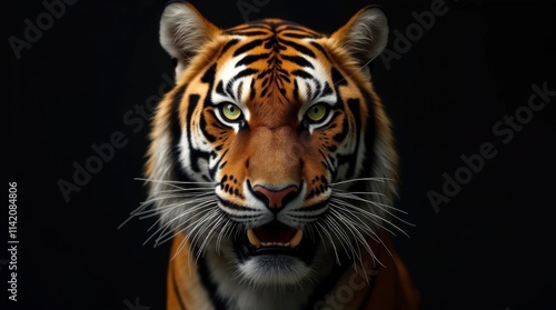 Tiger with Fierce Green Eyes Close-Up