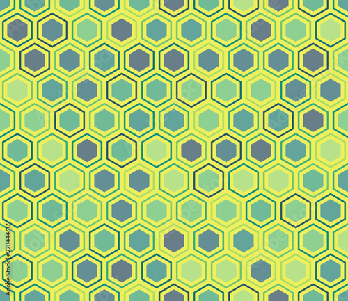 Tileable hexagon pattern. Hexagon mosaic background with inner solid cells. Hexagonal shapes. Multiple tones color palette. Seamless pattern. Tileable vector illustration.