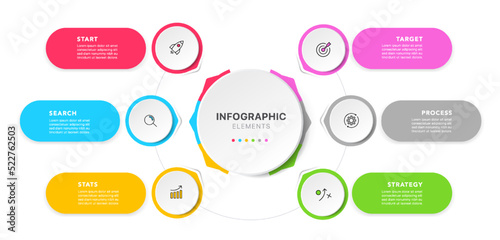 Timeline circle infographic design with 6 options or steps. Infographics for business concept. Used for presentations workflow layout, banner, process, diagram, flow chart, info graph, annual report.