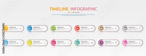 Timeline for 12 months or 1 year, Infographic chart template for business.road map.