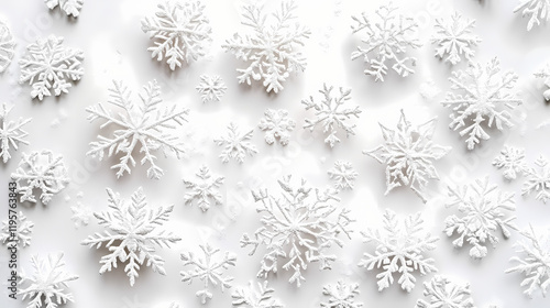 Tiny snowflakes on a pure white canvas. Brightfern. Illustration