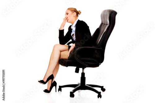 Tired or worried business woman sitting on armchair