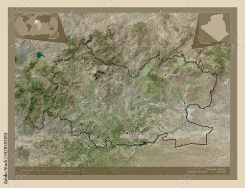Tissemsilt, Algeria. High-res satellite. Labelled points of cities