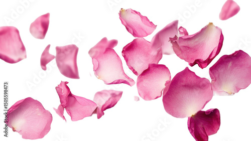 Title: Flying Pink Rose Petals Isolated on White Background