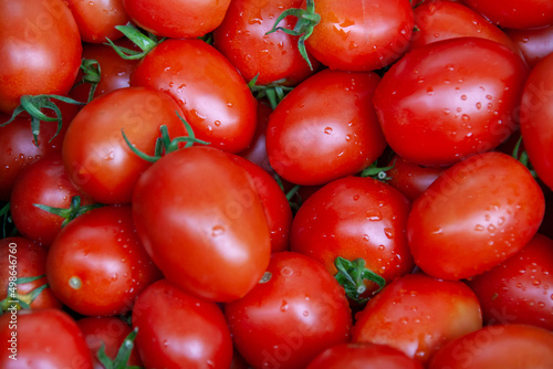 Tomaten, Roma-Tomaten mit Regentropfen