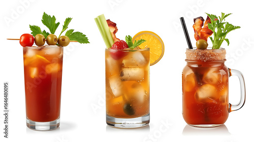 tomato juice in glassThe image showcases three cocktails: , a fruit cocktail, and a Bloody Caesar, each garnished with unique ingredients, with the left side featuring a.