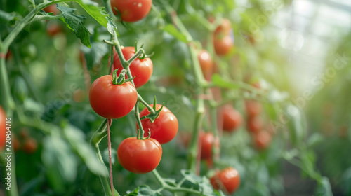 Tomatoes growing in the greenhouse