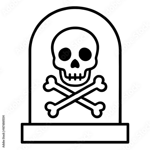 Tombstone with Skull and Crossbones Vector Illustration - Symbol of Death and Graveyard