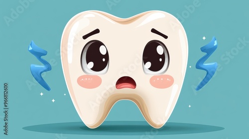 Tooth Icon with Light Blue Outline and Exclamation Mark for Sensitivity