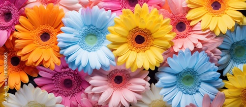 Top view of a bouquet featuring vibrant gerbera flowers with ample copy space for visual composition