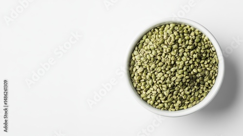 Top view of a bowl filled with hemp seeds on a white background.
