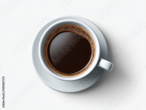 Top view of coffee cup on white background