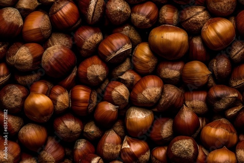 Top view of group of hazelnuts. Generative Ai