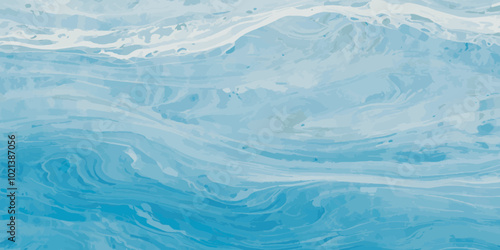 Top view on blue and white ocean wave background. Water ocean wave white and soft blue aqua, teal and marble texture.