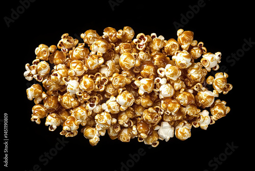 Top View Sweet Caramel Popcorn Pile on Black Background