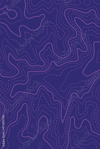 Topographic map background. Generating a terrain elevation map. Grid map. Contour map. Valleys and mountains. Geography concept. Wavy background. Vector illustration.
