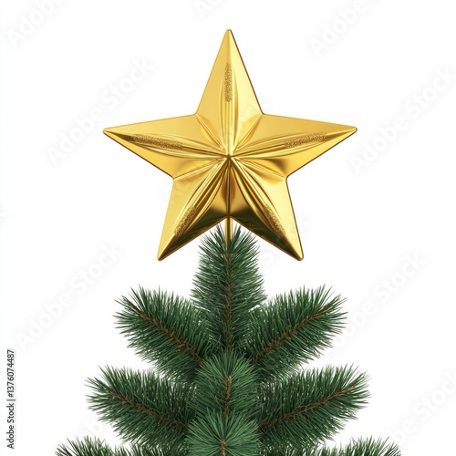 Topping Christmas Tree with Golden Star Decoration for Festive Holiday Season