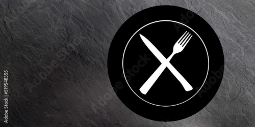 Topview of Set of Plate, Fork and Knife Silhouette on Dark Gray Background