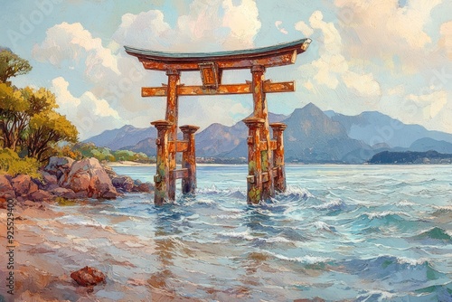 Torii Gate Seaside Shrine Shinto Religion Spiritual Symbol